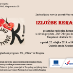 U Galeriji grada Krapine će se u petak 22. ožujka 2019. u 19,00 sati otvoriti izložba keramike polaznika radionica keramike u okviru Projekta “Ok! Otkrijmo kreativnost” Umjetnost i kultura 54+. Radovi su nastali na radionicama keramike koje su vodile renomirane likovne umjetnice i keramičarke Ljerka Njerš i dr.art. Mirjana Smolić. U prigodnom glazbenom programu nastupit će FS “Viline”.
